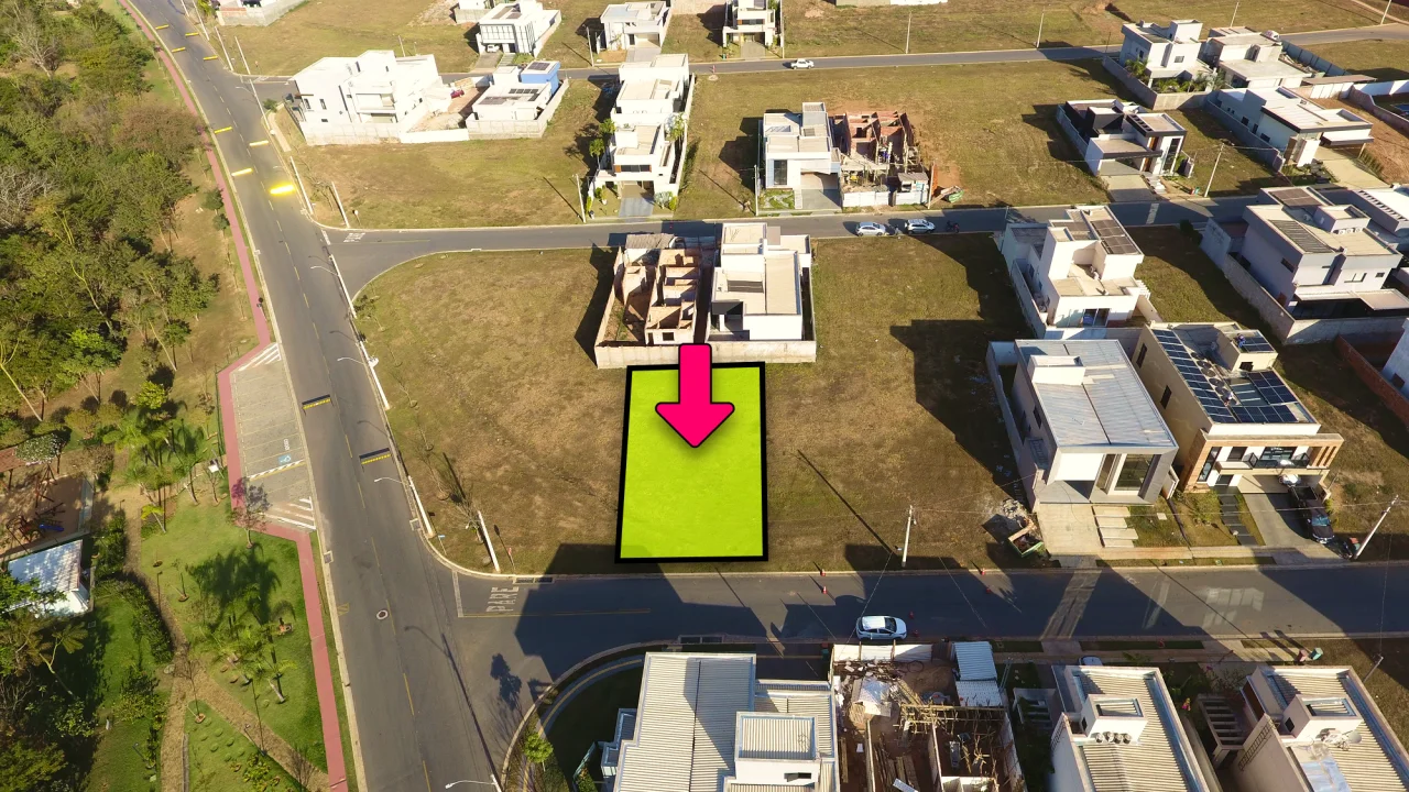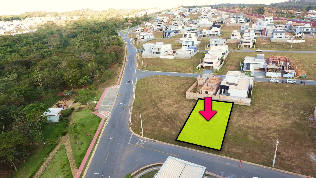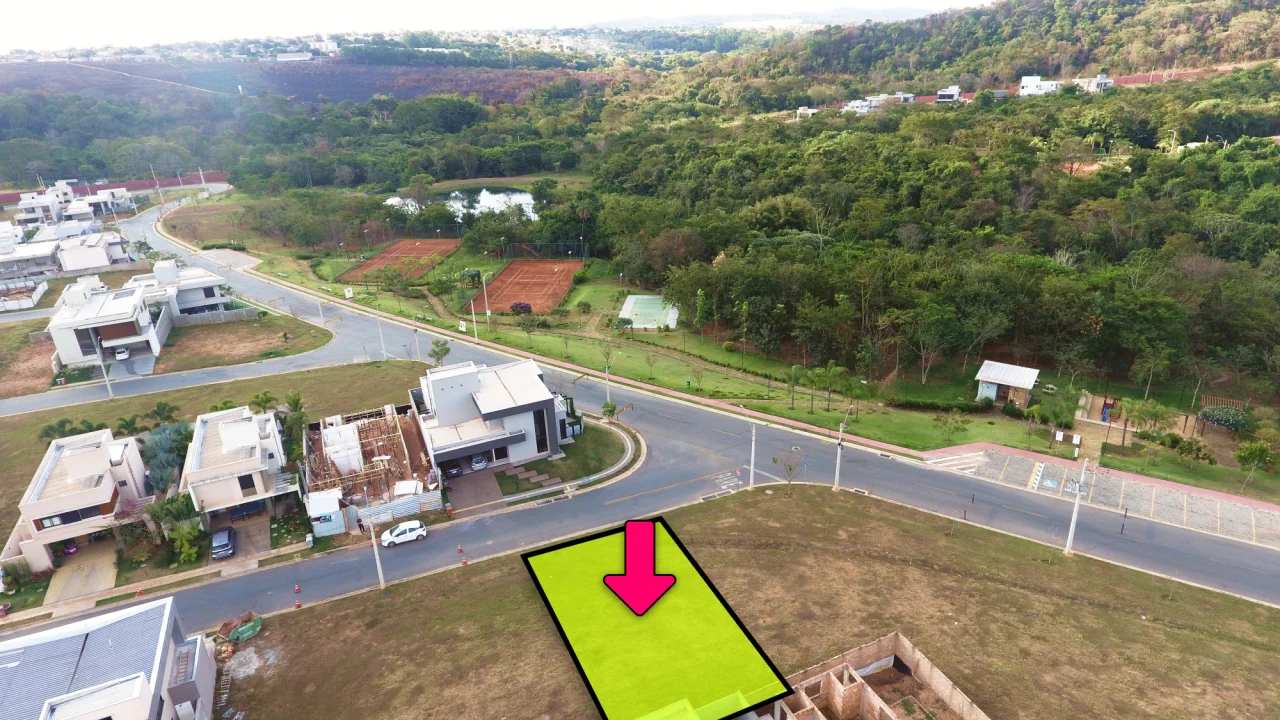 - 307.85 m² de área total - Lote de contraesquina na parte mais plana do condomínio, ao lado do playground e quadras de tênis. - A menos de 15 min do Flamboyant Shopping - R$ 295.000,00