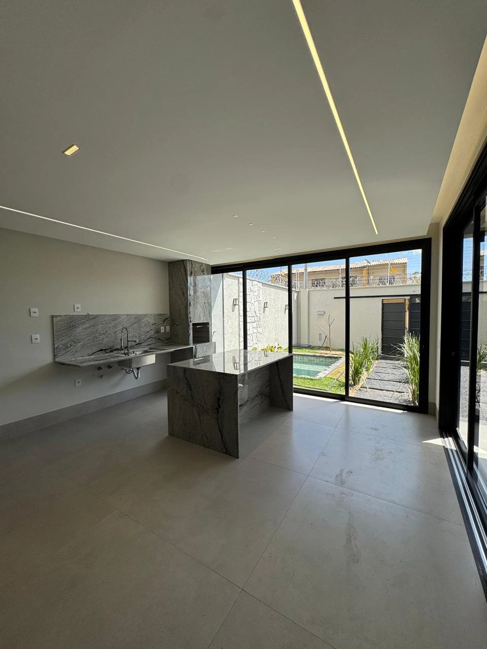 - Sala de tv/estar, sala de jantar e cozinha/área gourmet com churrasqueira, tudo integrado;