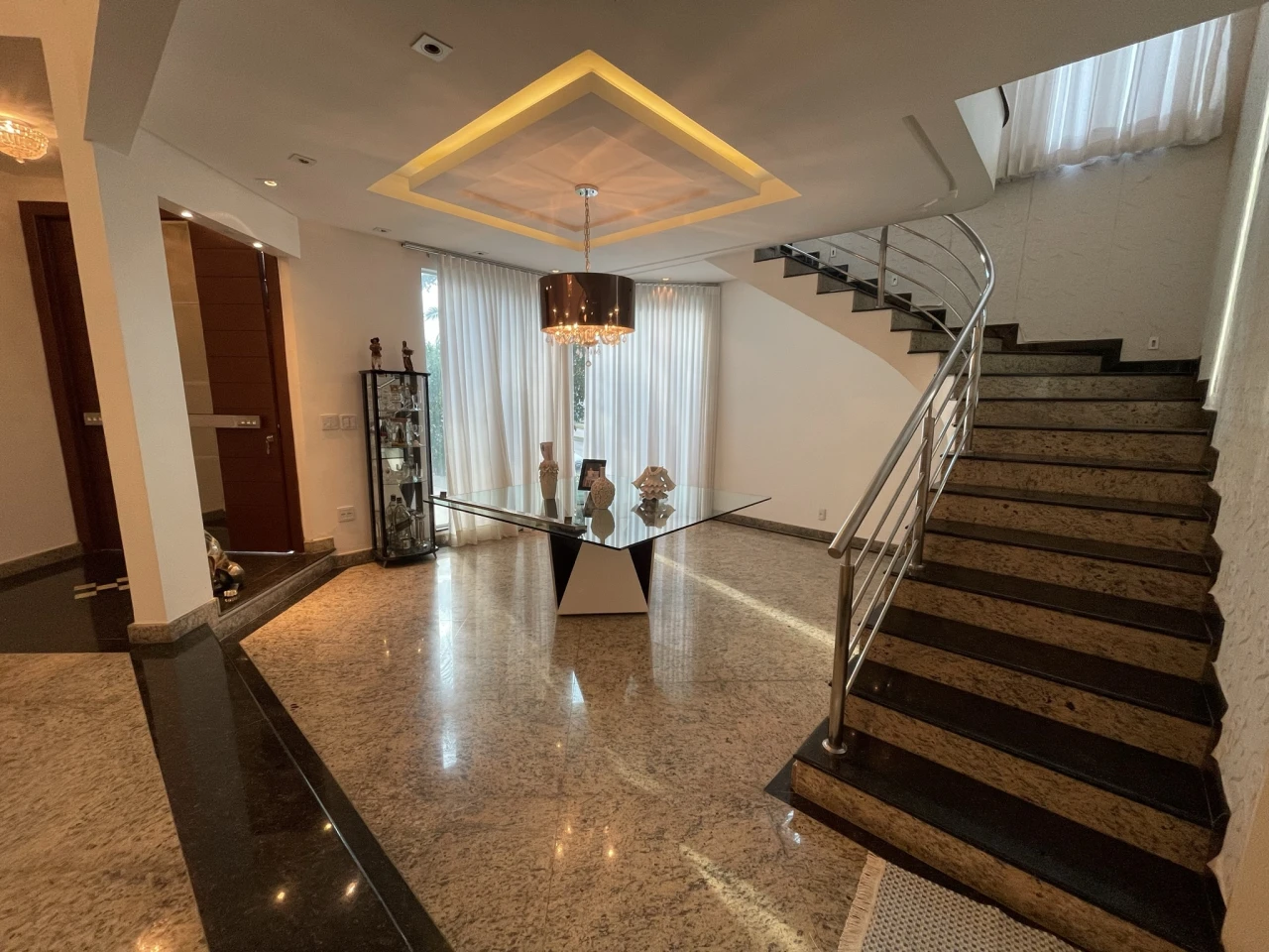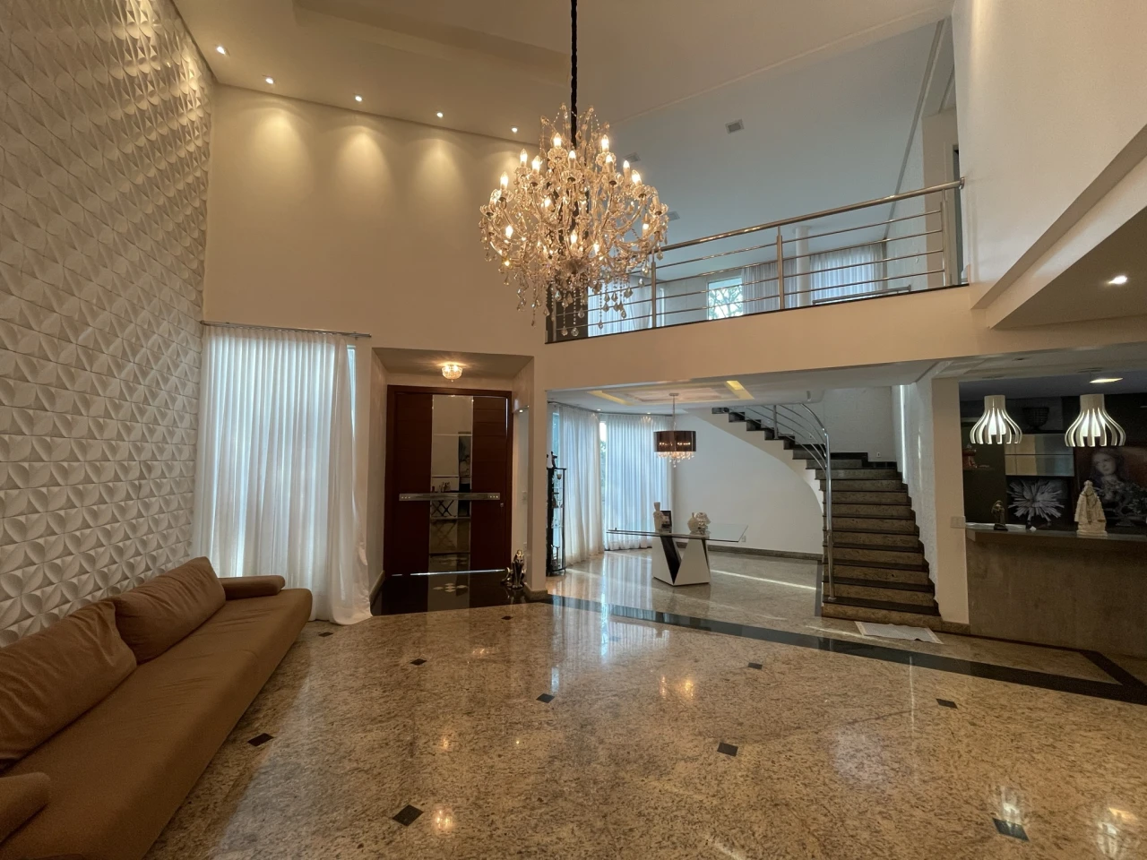 Suíte térrea, sala com pé direito duplo, lavabo, repleto em armários e iluminação, home, piscina aquecida, sauna molhada, área gourmet climatizada