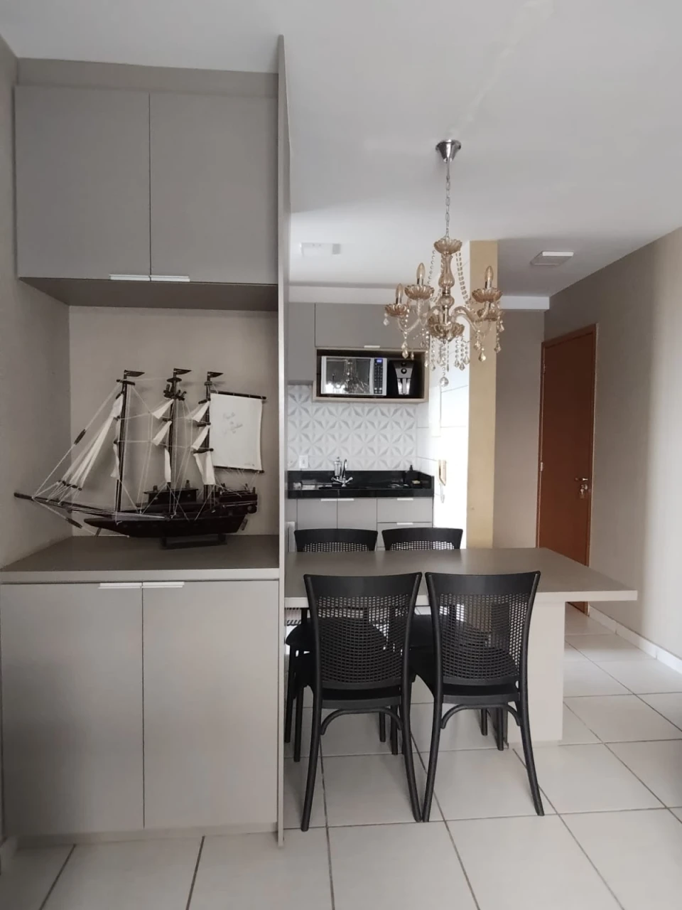 Apartamento nascente, andar alto com varanda, rico em armários e guarda roupa, banheiros reformados com marcenaria.