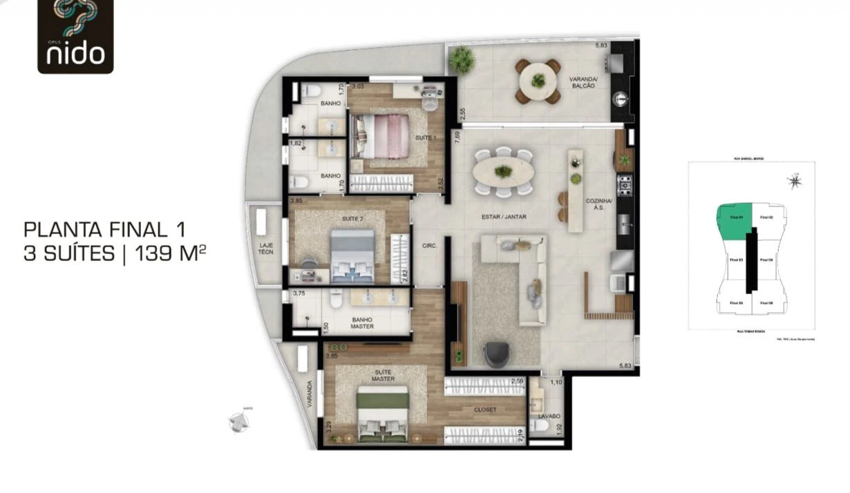 - 3 quartos / 3 suítes