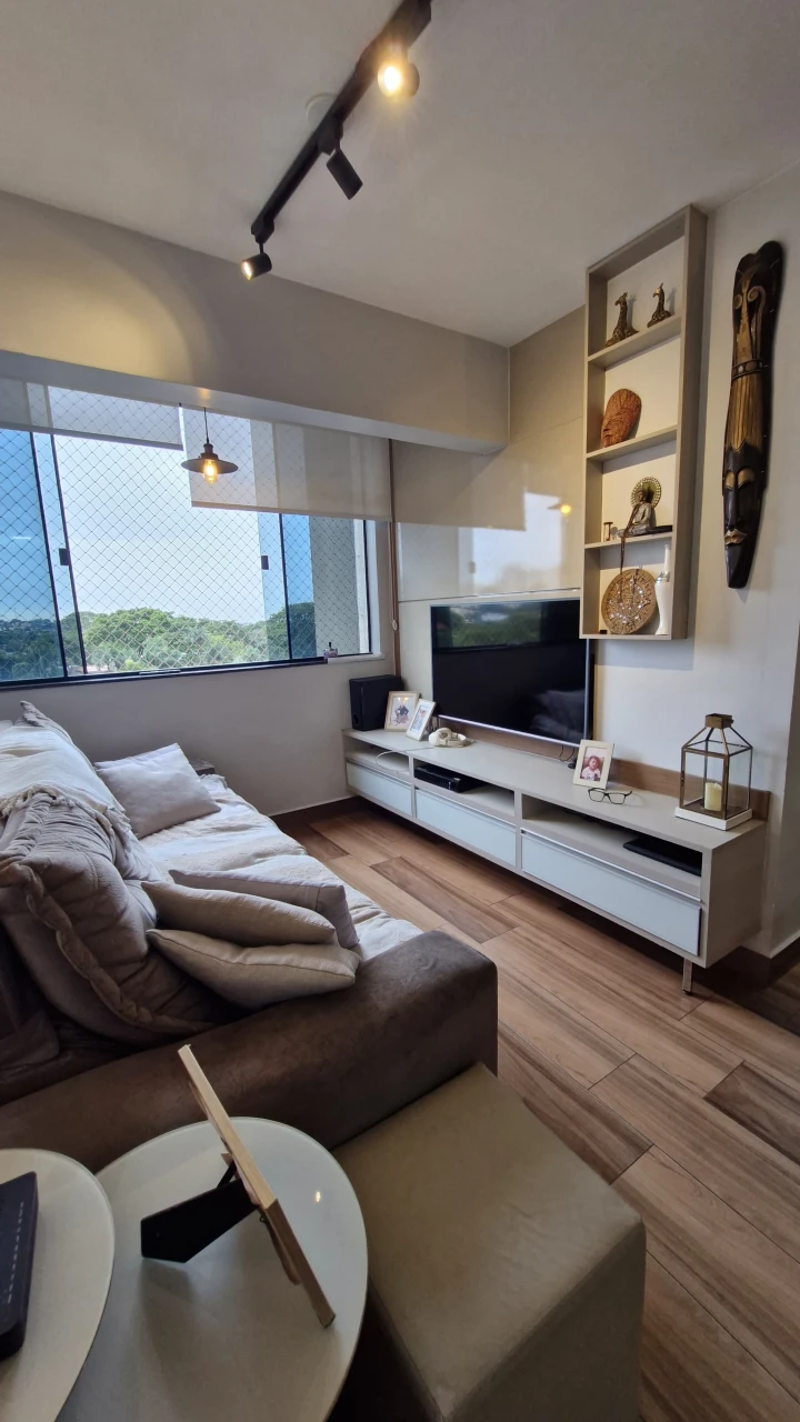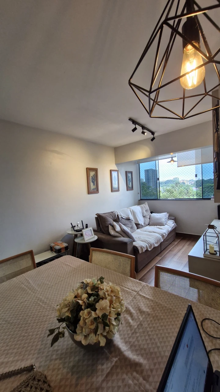 Reformado com piso em porcelanato, Sala, cozinha e banheiro com armários planejados, 2 vagas de garagem coberta, portaria física 24hs, gerador de ener