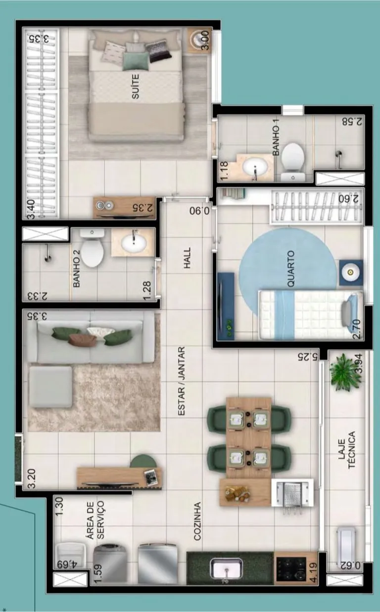59m² de área util e total