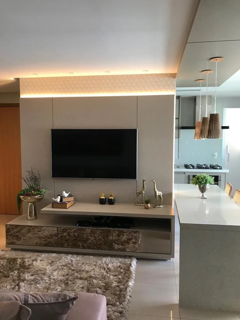 Rico em armários planejados, cortina de vidro nas duas sacadas (Gourmet e suíte casal). Fica: Cooktop, coifa, forno, micro-ondas e 3 ar condicionado