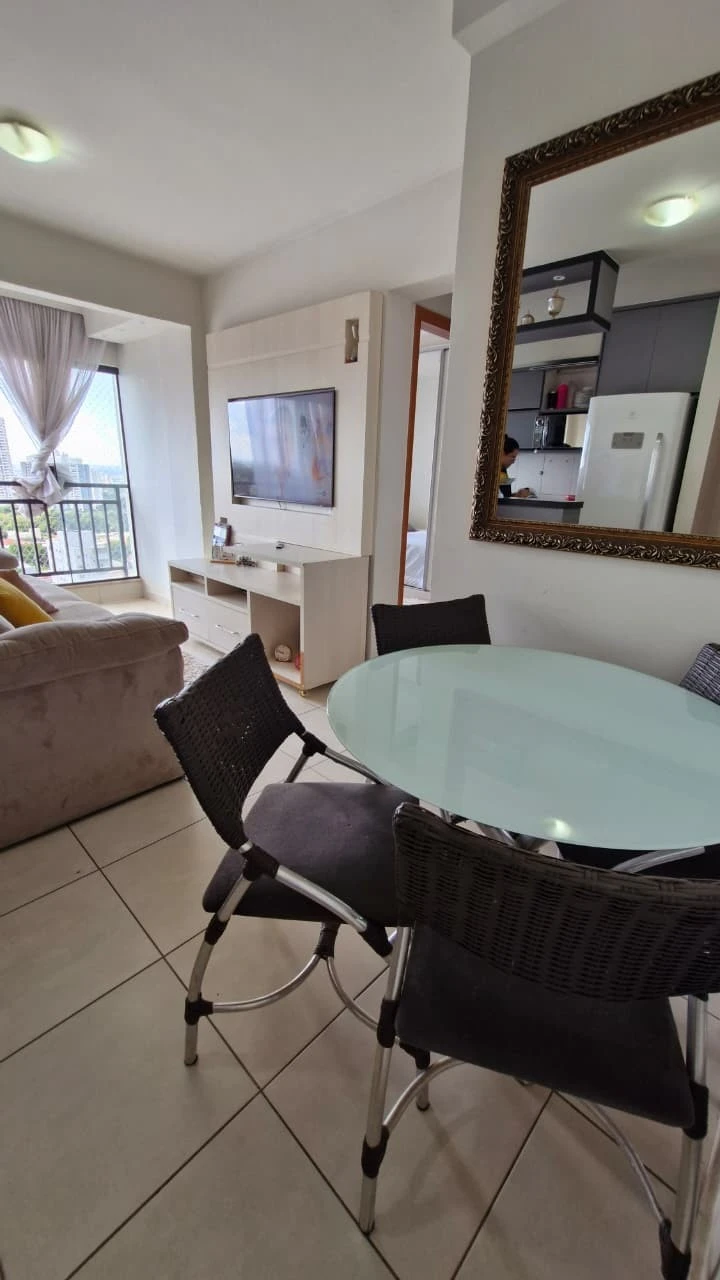 - 55 m² de área privativa - 2 quartos / 1 suíte - Diferenciais: Apartamento será vendido porteira fechada: Cozinha com planejados, microondas, fogão 4 bocas, sugar, máquina de lavar, Sala mesa redonda com 4 cadeiras, sofá para 4 lugares , painel com TV, Quarto cama casal com armário planejado, banheiro social com planejados e box, quarto suíte cama casal com cabeceira, armário planejado e ar-condicionado, tem escaninho; - 1 vaga de garagem individual - Pizza Gyn Delivery & Buffet, Avenida independência, Campos Fit Academia, Rodízio e Diversão, Avenida Rio Verde e a poucos minutos do Buriti Shopping; - Posição Solar: Poente - Andar Intermediário - Condomínio: R$ 400,00 - R$ 415.000,00
