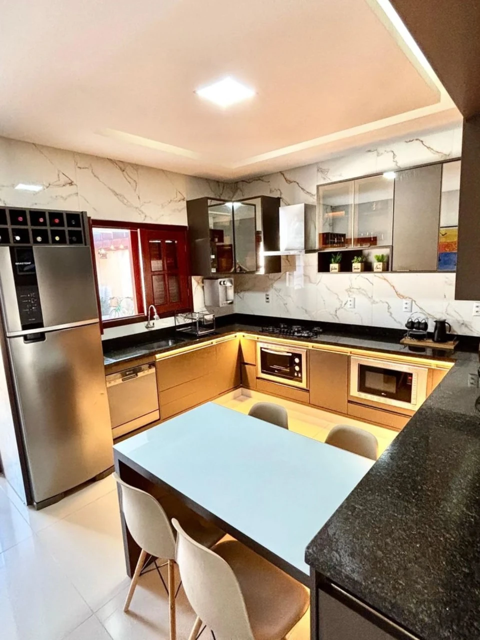 Iluminação planejada, projeto luminotécnico e acabamento premium: porcelanato, mármore, madeira colonial do Pará,Piscina com cascata. Espaço gourmet