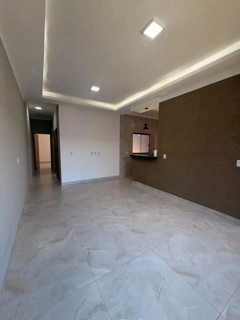 Piso em porcelanato, acabamento em gesso fino e iluminação em LED que traz sofisticação e aconchego.