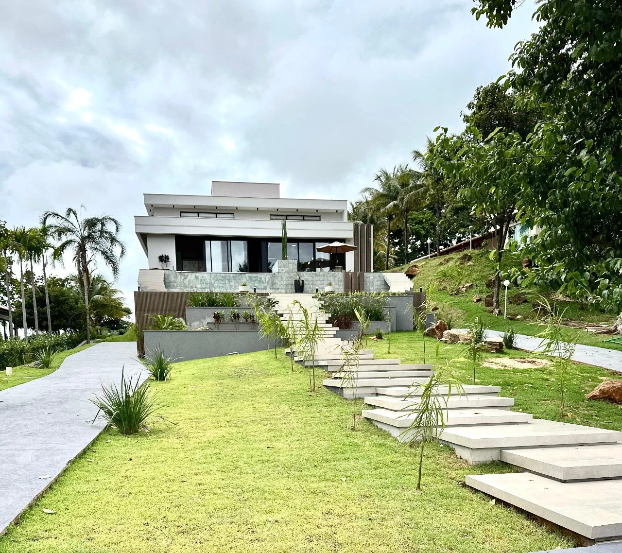 6 suítes amplas, bem distribuídas e confortáveis, suíte máster com hidromassagem e sauna privativa. Piscina com borda infinita integrada à natureza